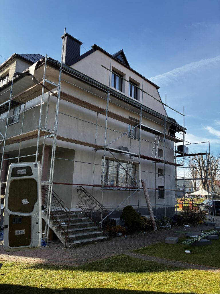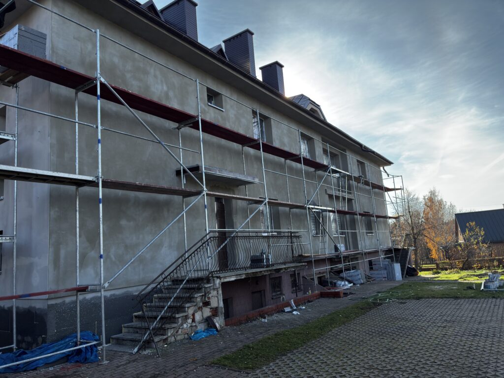 Poniżej przedstawiamy fotorelację z postępu prac przy ociepleniu domu parafialnego.